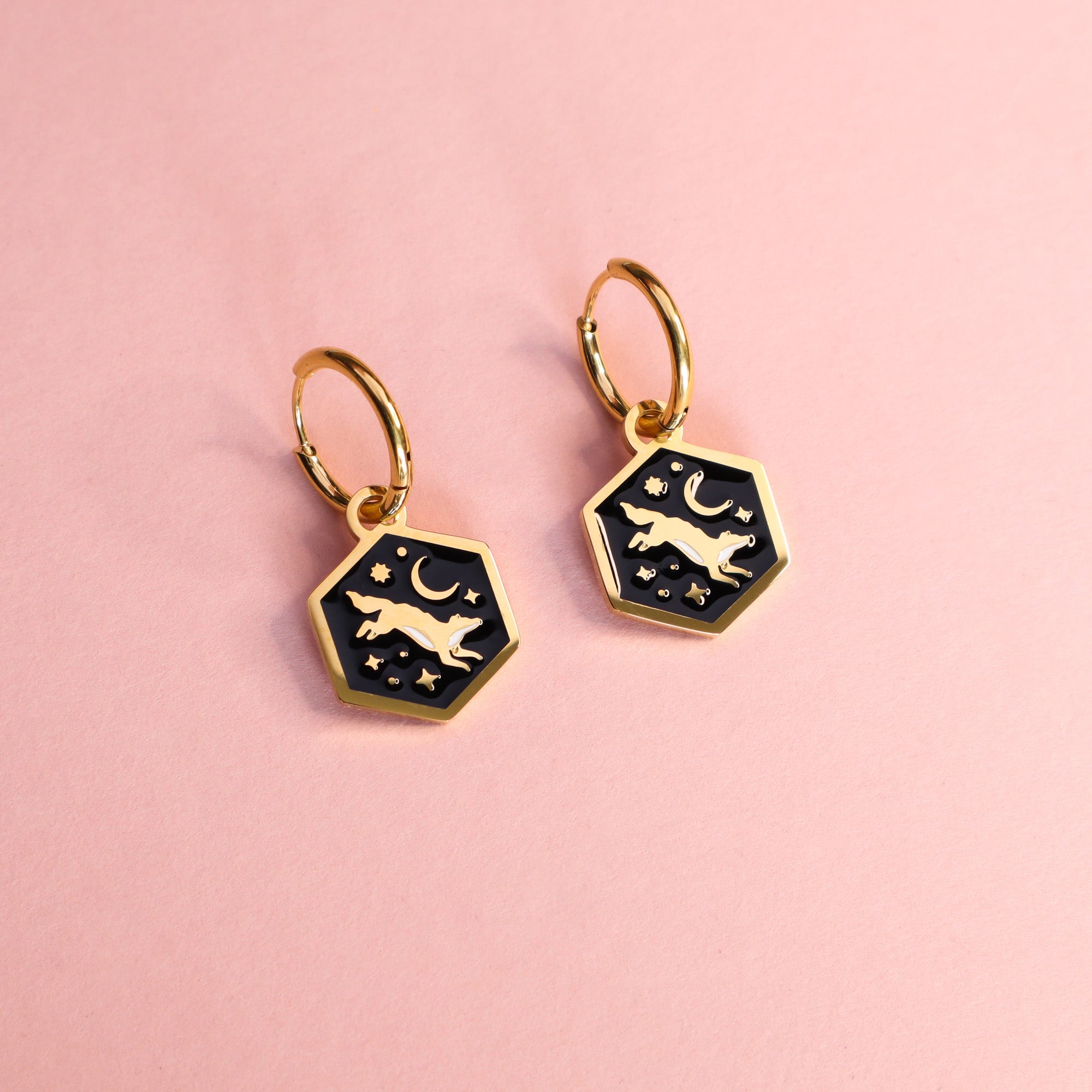 Pick your perfect pair of enamel earrings featuring a gorgeous selection of animals and stars.